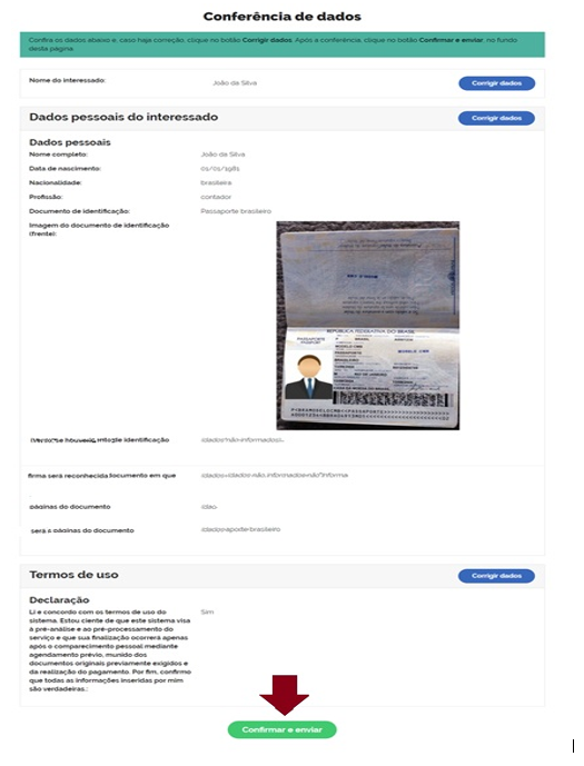 Após preencher todas as informações, será gerada uma página para conferência dos dados inseridos.