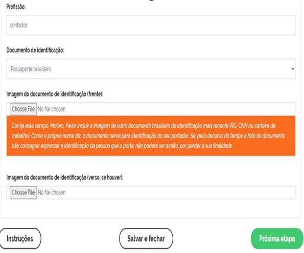 - Pedidos enviados sem a validação do Consulado serão imediatamente retornados.