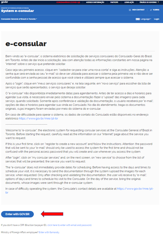 a. O e-consular é o sistema de solicitação de serviços adotado pelo Consulado-Geral em Toronto.