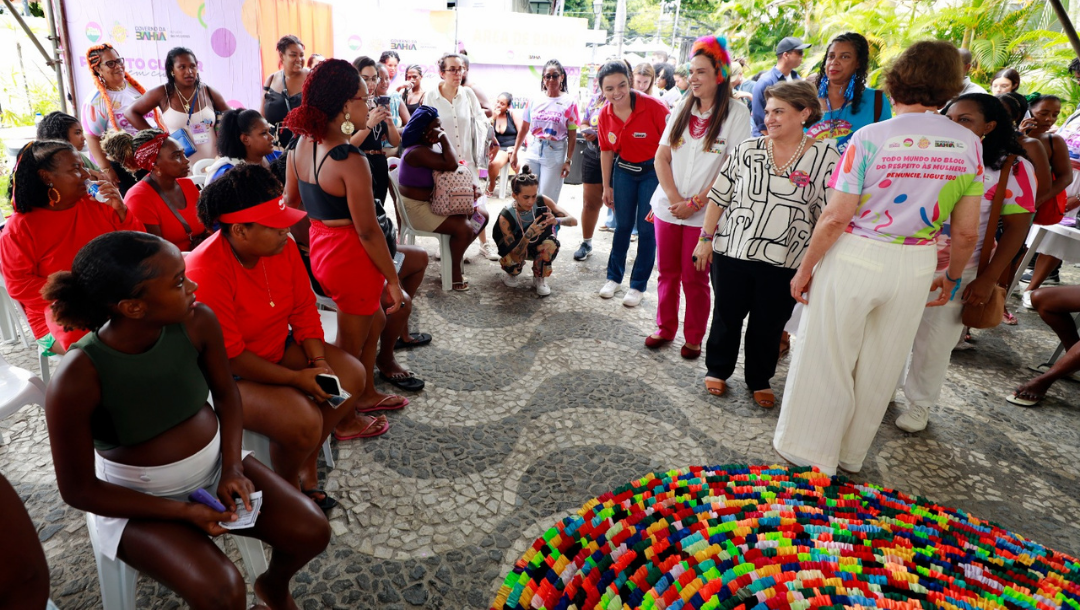 A campanha, lançada pelo Ministério em parceria com 18 estados, conta com uma estratégia de alto impacto visual e mobilização social com distribuição de pulseiras, adesivos, viseiras, ventarolas, tatuagens temporárias, faixas e balões blimps, com foco na prevenção e na proteção da vida de mulheres e meninas. Márcia Lopes também reforçou o trabalho conjunto entre o Ministério das Mulheres, o Governo da Bahia e a Secretaria de Políticas para as Mulheres do Estado (SPM-BA) para ampliar o alcance das ações de prevenção e acolhimento.