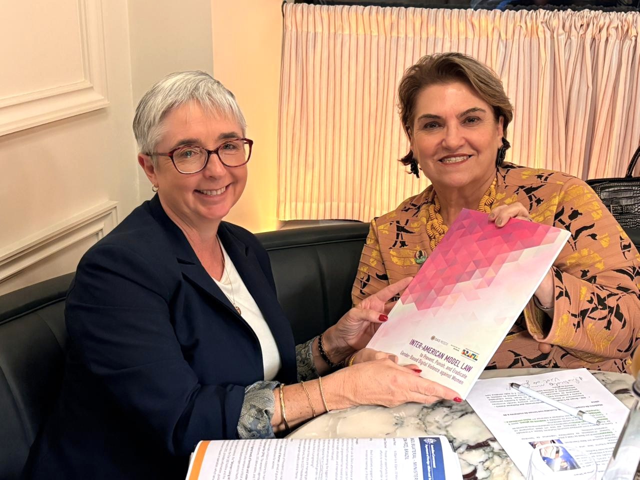Durante a conversa, a ministra apresentou iniciativas do Brasil voltadas ao enfrentamento da violência de gênero, entre elas o Pacto Brasil de Enfrentamento ao Feminicídio e a proposta da Lei Interamericana para Prevenir, Punir e Erradicar a Violência Digital de Gênero contra as Mulheres, iniciativa que busca fortalecer a proteção das mulheres também no ambiente digital.