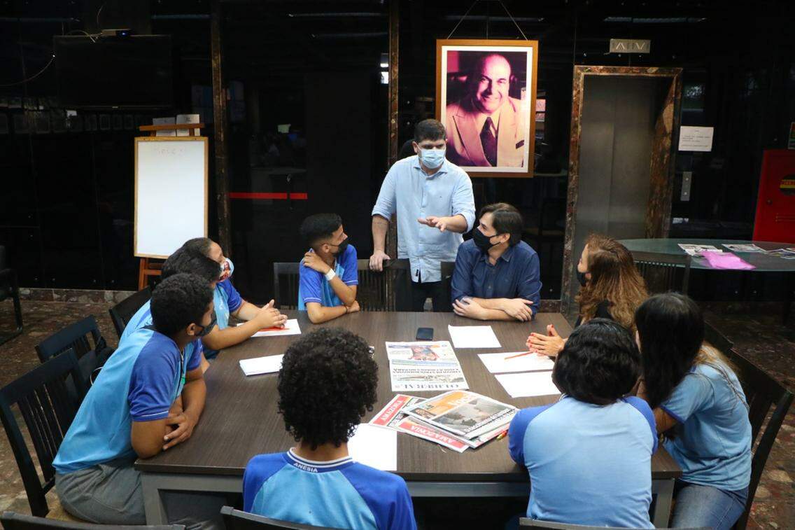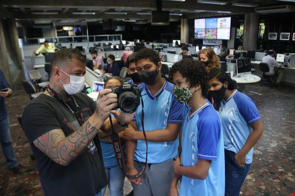 O Programa O Liberal na Escola apresentou, nesta segunda-feira (23), trouxe à sede do Grupo Liberal os alunos do 8º ano do ensino fundamental da Escola Estadual Professora Anésia . Os estudantes participaram de uma atividade dirigida na "aula-passeio", que contou com um bate-papo conduzido pelo jornalista Lázaro Magalhães, da chefia de produção de conteúdo de O Liberal, e também trocaram ideias com o fotojornalista Thiago Gomes e com o diretor de conteúdo de O Liberal, Daniel Nardin.