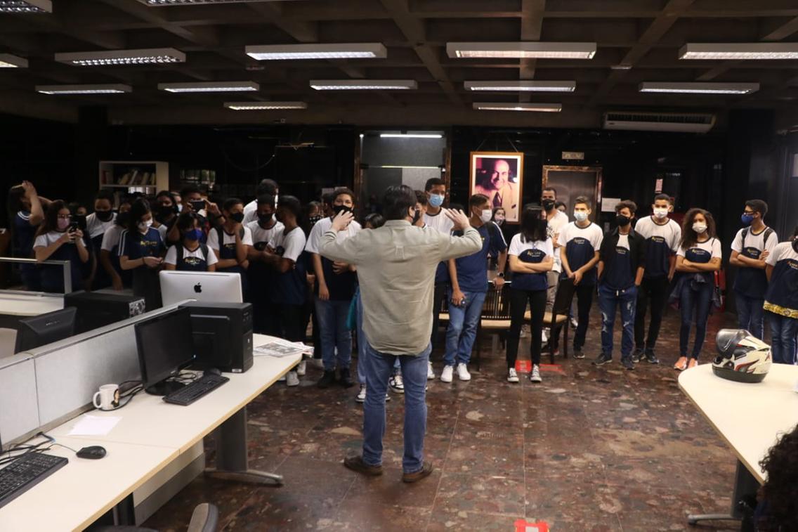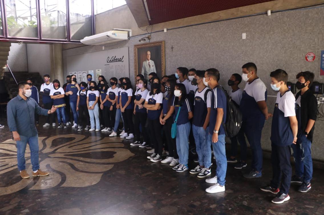 Nesta segunda-feira (16) o Programa O Liberal na Escola retomou o calendário de atividades e realizou a primeira visita de 2022 à sede do Grupo Liberal, na avenida Romulo Maiorana. Aproximadamente 40 alunos do 9º ano do ensino fundamental e 1º ano do ensino médio do Colégio Aspecto Icui visitaram as dependências do jornal e conheceram o conceito da redação integrada na prática e, também, o moderno parque gráfico do Grupo Liberal, com visita guiada pelo jornalista Lázaro Magalhães, da chefia de produção de conteúdo de O Liberal.