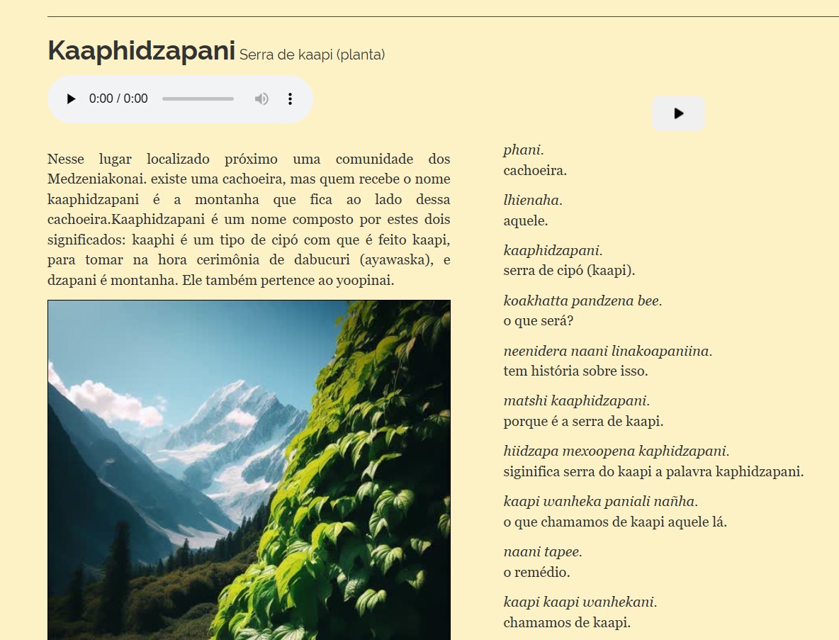 Demanda dos Povos Indígenas - Enquanto tecnologia social, o projeto teve início em 2019, a partir de uma demanda vinda diretamente de José Augusto Kanoé, cacique da comunidade Kanoé, da Terra Indígena Rio Guaporé, no estado de Rondônia, para a equipe do Museu Goeldi. O pai do cacique foi um dos últimos falantes da língua Kanoé, e para incentivar e fortalecer o uso da língua pelos mais novos, a cooperação de mais de quatro décadas com o Museu Goeldi foi fundamental. A partir do trabalho de documentação feito por pesquisadores da instituição nos anos 1980 e 2000, foi possível elaborar o primeiro dicionário multimídia Kanoé-Português.