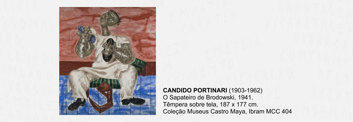 Candido Portinari, pintor nascido em Brodósqui, São Paulo, recebeu formação artística acadêmica na Escola Nacional de Belas Artes, que lhe conferiu o grande prêmio de viagem à Europa em 1928. No retorno ao Brasil, na década de 1930, viria a se firmar como o primeiro grande pintor moderno nacional. Esta reputação, tecida com o apoio da crítica de arte do período, especialmente de Mario de Andrade, tomaria impulso com o prêmio de menção honrosa recebido do Instituto Carnegie de Pisttsburg, EUA, vindo a consolidar-se, definitivamente, a partir de 1936, com o convite para a realização dos murais para o Palácio Capanema, edifício moderno, sede do Ministério da Educação. Ao longo dos anos 1940-50, a carreira de Portinari se desenvolveu no exterior com exposições nos EUA, França, Argentina, Uruguai, Israel e México e obras presentes em algumas coleções particulares expressivas e em museus internacionais.