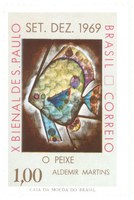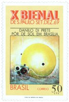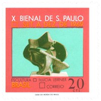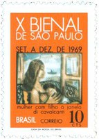 Em comemoração a Bienal de São Paulo, em 1969, foram emitidos diversos selos postais, a maioria trazendo pinturas de artistas nacionais. Uma das obras retratadas foi “Mulher com filho à janela”, de Di Cavalcanti. Em um evento com a participação de diversos artistas internacionais como a Bienal, a escolha exclusiva de obras nacionais para os selos postais parece uma tentativa de incluir a arte brasileira moderna no panorama artístico mundial. |