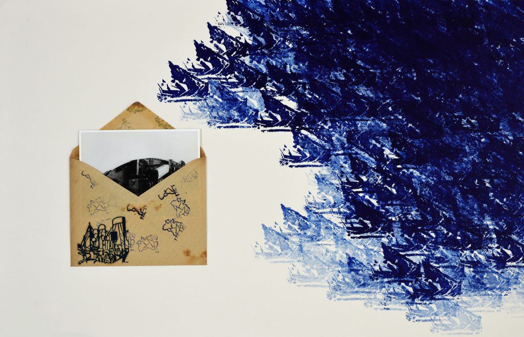 Sobre estes trabalhos, um olhar atento notará a presença de carimbos que citam algumas imagens emblemáticas. Reproduzido na entrada está o carimbo usado na série de obras que dá nome à exposição; trata-se de uma citação ao Mar de gelo (1823-1824), pintado pelo alemão Caspar David Friedrich (1774-1840). Na imagem original, duas embarcações estão naufragadas e misturadas com blocos de gelo. No percurso das imigrações que tiveram o Brasil como ponto de chegada, muitas vidas naufragaram fisicamente e existencialmente. Os blocos de gelo derreteram devido ao poder solar do Sul, mas a incerta saudade daqueles que seguiram no norte gélido instaurou em alguns dos novos brasileiros a mesma impossibilidade de ação dos barcos de Friedrich. Há quem chame esse fenômeno de melancolia.