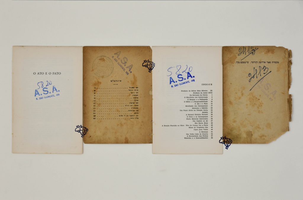As narrativas acerca do processo de migração não apenas de sua família, mas de milhares de judeus-alemães que enxergavam o Brasil como território para um novo começo, são centrais nesta exposição. Peças gráficas são matéria e tema dos trabalhos reunidos – agendas, livros de literatura e livros didáticos – e nos fazem refletir sobre a esfera afetiva que puderam um dia ter. As manchas nos papéis são essenciais para nos lembrarmos do acúmulo temporal e para percebermos suas contaminações por fluidos corporais e lugares de condicionamento. Os móveis da sala de estar e do escritório de uma família podem se tornar gavetas de um arquivo histórico.