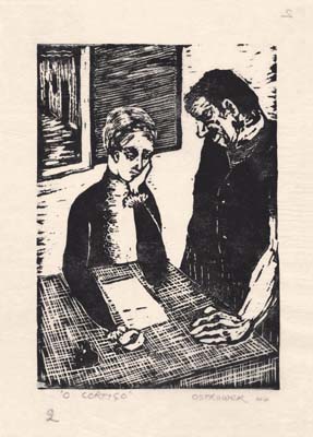 Mas o olhar atento enxergará mais que isso. Poderá perceber que a minúcia realista do primeiro conjunto deixa ver, aqui e ali, linhas e volumes em composições quase abstratas, ou ainda que nas representações de O cortiço e de Fontamara vibra algo de biográfico: uma sensibilidade marcada pela fuga dos pogroms, bem como pela vida pobre num Brasil não muito diverso daquele retratado por Aluísio Azevedo na segunda metade do século XIX ou do mundo rural, estacionário e opressivo, criado por Ignazio Silone para falar da Itália sob o regime fascista. No segundo conjunto, o mesmo olhar deverá colocar-se diante de uma realização em si mesma e encontrará mais que a passagem de uma linguagem a outra. No terceiro, notará que as cores despontam sóbrias em xilogravuras e, mais tarde, explodirão vibrantes com outra técnica, a serigrafia, e que a abstração deixa ver elementos figurativos.