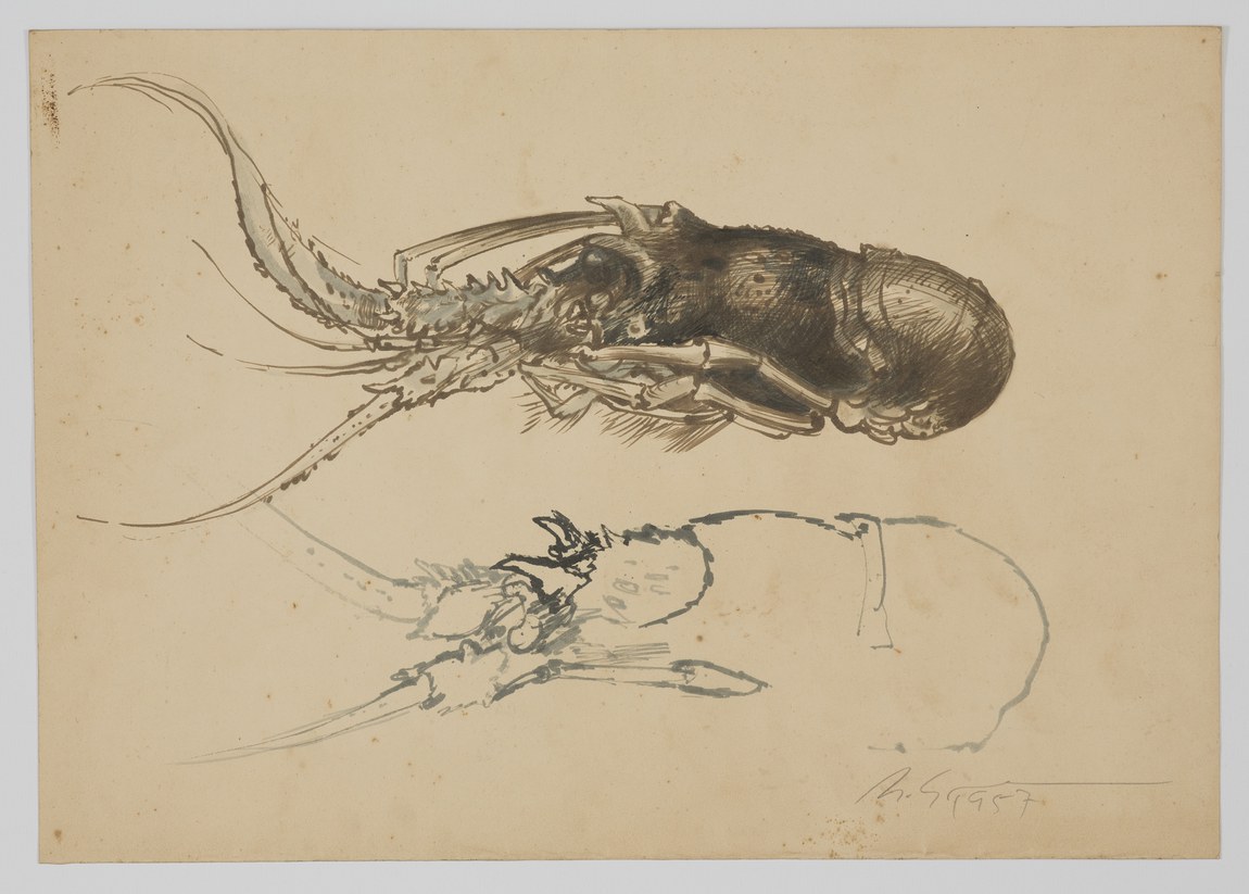 Na Bahia, a partir de 1952, Marcelo desenha crustáceos, lagostas e caranguejos, até começarem a apodrecer. As estruturas de seus exoesqueletos, carapaças e pinças se replicam em outros bichos (nos cavaleiros e suas armaduras em anos seguintes), e recobrem-se de pelos que ora se estendem como pontas afiadas, quelíceras de bichos monstros, peixes-aranhas ou outras possibilidades de simbiose, como o bicho peludo e olhudo, de novo, de Kubin, em litografia de 1914.