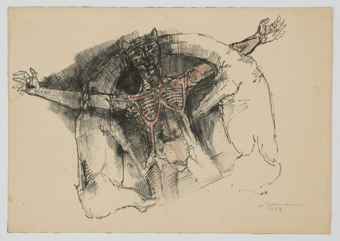 Vistos em conjunto, esses desenhos e estudos de Marcelo Grassmann compõem uma espécie de gabinete, não de curiosidades como os medievais e de coleções de príncipes, mas de possibilidades de cruzamento de formas de existência, que ao se reunir graças à intervenção do artista, liberam-nas do compromisso com qualquer narrativa, seja voltada ao sonho, seja a algum realismo fantástico ou onírico. Marcelo não é um contador de histórias, como Kubin, recolhendo dele e de outros escritores (Hoffmann, Kafka, Bram Stocker, Alex Raymond, Hal Foster, etc.) a potência imagética contida nos textos. Por isso, muitos desses desenhos ficaram guardados com o artista, raramente sendo vistos. Eles compõem um acervo essencial para o qual Marcelo sempre retornou a fim de iniciar ou reiniciar as suas séries de trabalhos. As figuras, heteróclitas, sugerindo monstros ou seres informes, são destituídas de todo e qualquer simbolismo (como os peixes agigantados de Goeldi) para potencializarem-se como imagens apenas, ou seja, como figuras que resistem, ou que se abrem (são duas possibilidades) a interpretações diversas para quem os vê. Mas há uma terceira possibilidade que amplifica ainda mais essa potência ou vontade: a de não serem vistos, nunca, de permanecerem reunidos em silêncio no coração do ateliê, dentro de gavetas ou espalhados no espaço, onde continuam a se procriar, talvez, longe de qualquer juízo moral ou suspeição humana.