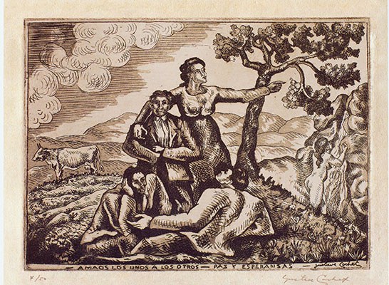 A última estampa foi realizada quando a guerra já estava perdida e ele já estava no exílio, na cidade fronteiriça de Perpignan, entre janeiro e fevereiro de 1939. Esta última obra não estava incluída na pasta que o Museo Cochet de Rosário conserva, de onde provêm estas obras. A série completa está no Museu Nacional d’Art de Catalunya, de onde veio a imagem exposta, que revela a esperança de uma humanidade unida que se renova com urgente atualidade.