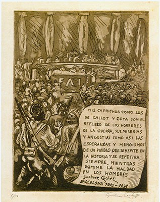 Durante a guerra, deixou de pintar e centrou-se exclusivamente na gravura. Trabalhou no Casal de la Cultura, espaço criado como retaguarda cultural da revolução. Iniciou sua série, que chamou de Caprichos, homenageando seu admirado artista espanhol, Goya, e o francês Callot. A técnica utilizada foi a água-forte, incluindo em algumas delas a água-tinta e a gravura a açúcar.