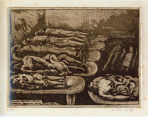 As primeiras imagens são de crítica social, em que põe em evidência relações sociais destruidoras dos laços humanos. Retrata cenas de milicianos e milicianas em ação, e as conspirações e traições dos poderosos. Foi completando a série ao longo do desenrolar da guerra, refletindo seus horrores e injustiças. Sua potência visual emana de sua dor moral pelo conflito intrínseco à modernidade e que esta tenta resolver por meio da guerra.