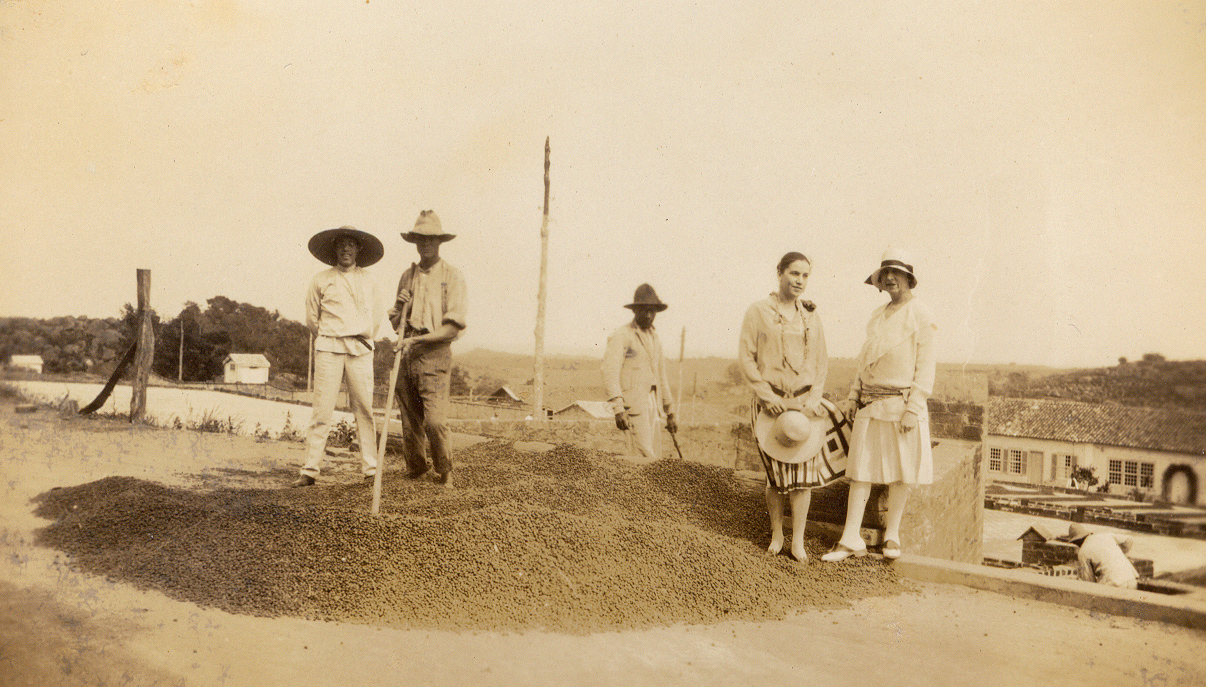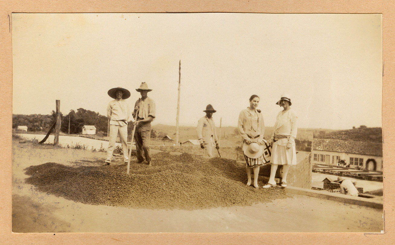 Nessa foto do Acervo Fotográfico do Museu, Lasar Segall se encontra diante do terreiro de café da Fazenda Santa Tereza do Alto, que pertencia aos avós de Tarsila do Amaral, situada no município de Itupeva, região metropolitana de Jundiaí, no interior do estado de São Paulo. Na mesma fazenda, Mario de Andrade, Tarsila e Jenny se encontram no terreiro de café, onde os grãos recém-colhidos são espalhados para secar ao sol.