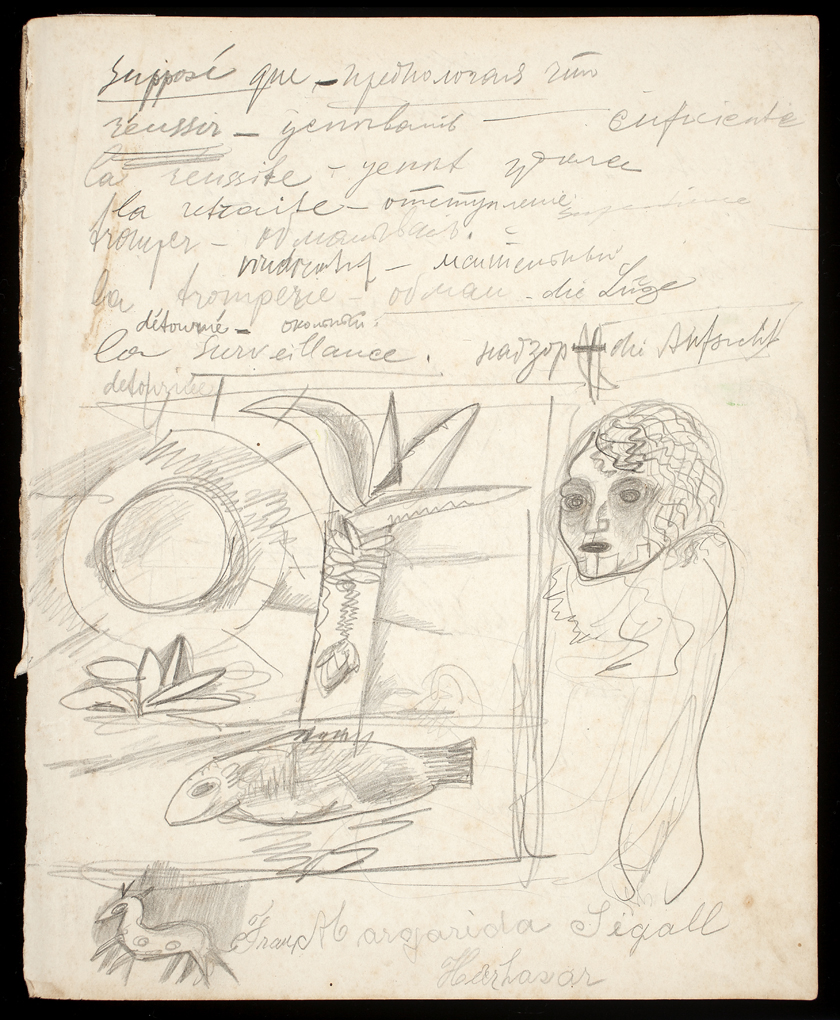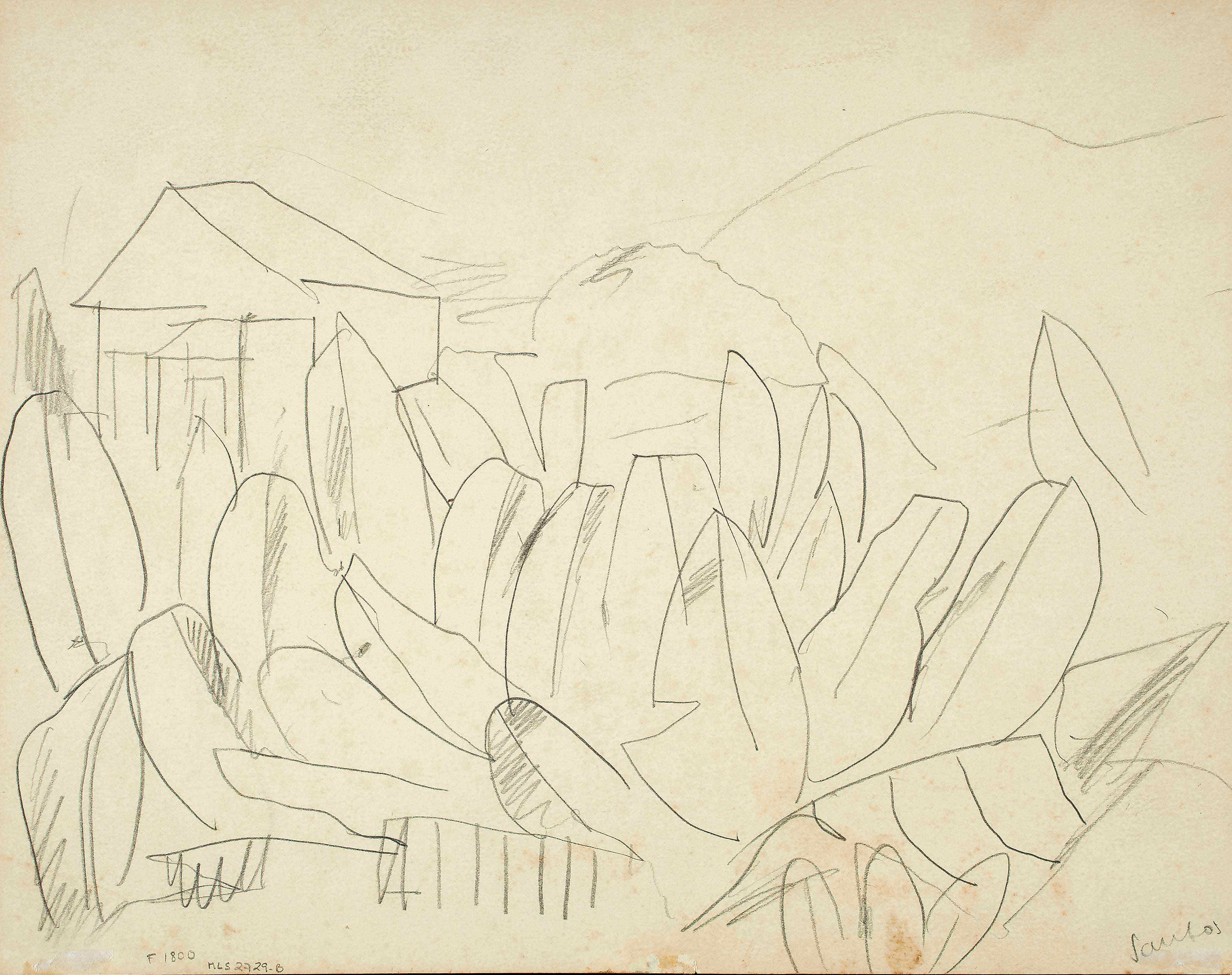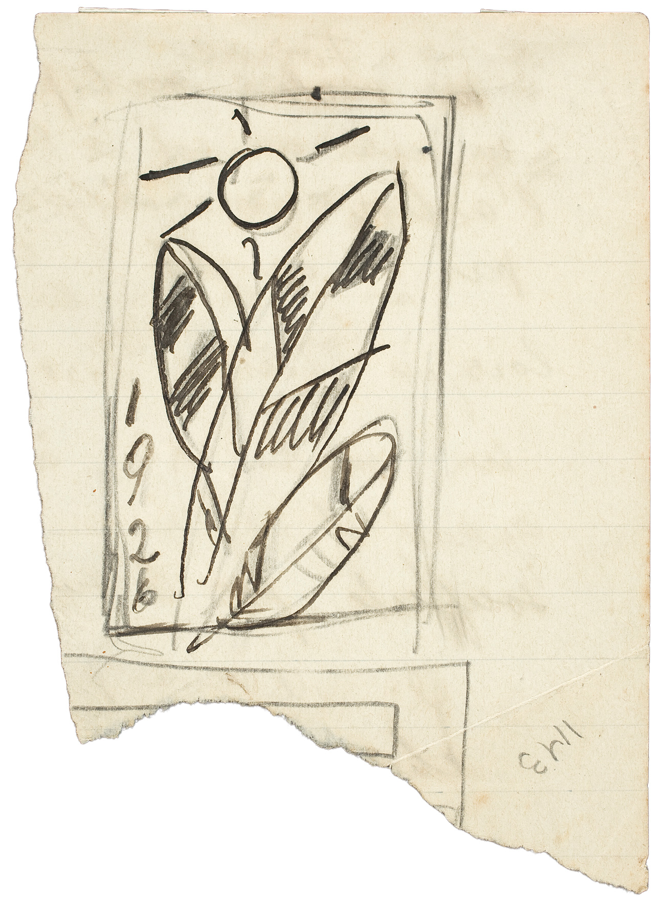 Estes esboços para futuros trabalhos resumem as possibilidades de desenvolvimento de uma poética a partir da vegetação. Três caminhos são cogitados por Segall. O primeiro esboço, de um sol infantil e três folhas de bananeira estilizadas, é um exercício de síntese em torno da noção de tropicalidade. No segundo esboço, a vegetação tropical envolve uma figura de mulher, e demonstra como a associação exotista entre a natureza e o feminino (e especificamente a mulher negra), é o mote de vários trabalhos da “fase brasileira”. No terceiro desenho, a bananeira é um tema em si; são exploradas as possibilidades de composição a partir de diferentes partes da planta, na chave da abstração e geometrização cubistas.