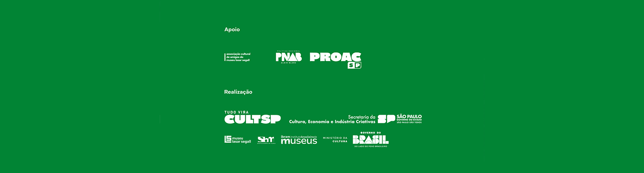 A exposição conta com o apoio do Governo Federal, da Política Nacional Aldir Blanc, do Governo do Estado de São Paulo, da Secretaria da Cultura, Economia e Indústria Criativas do Estado de São Paulo e do Fomento CultSP.