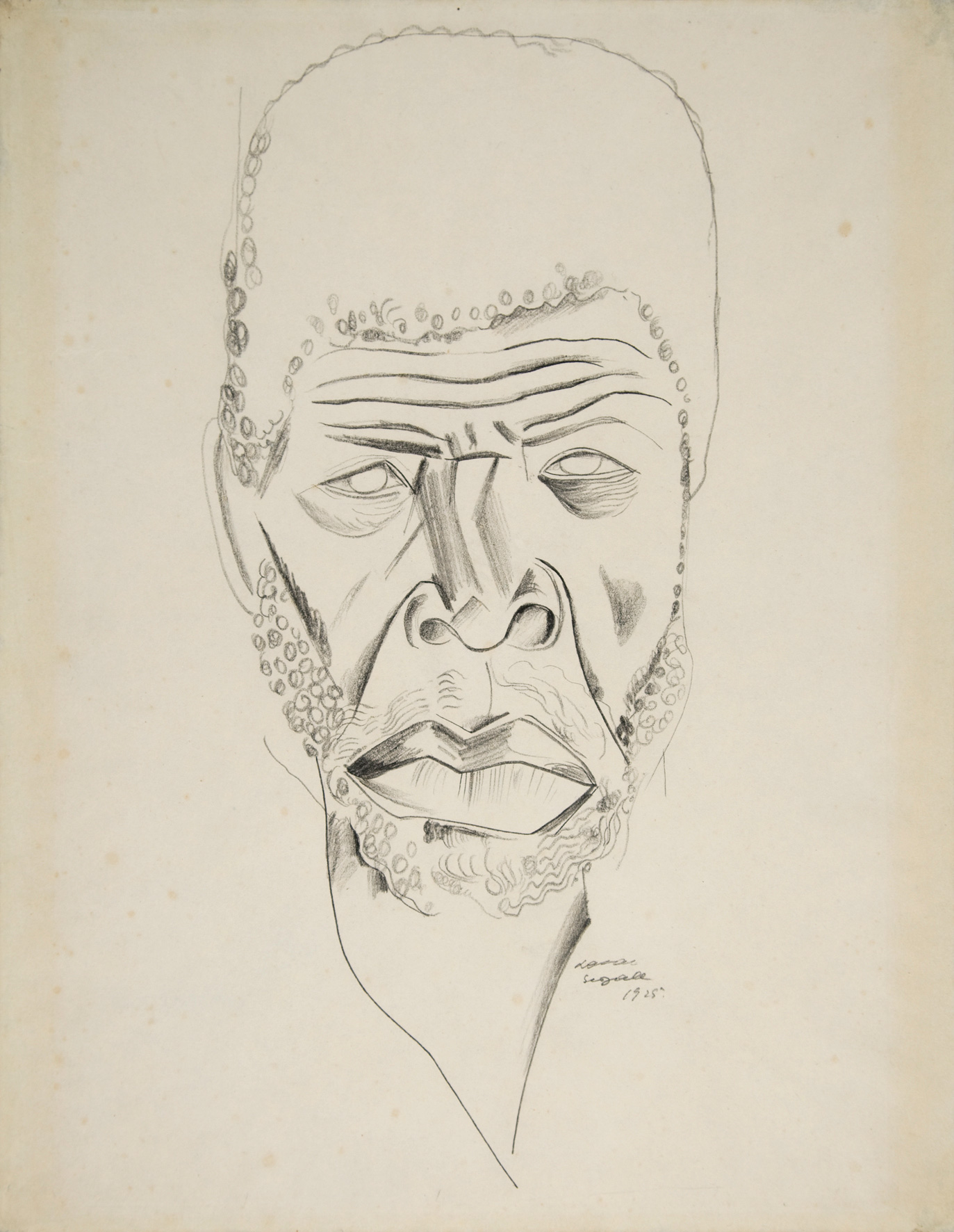 As feições de Olegário transmitem resistência e dignidade; enquanto o cabelo, os lábios e o nariz permitem identificá-lo como africano, as rugas indicam ser um idoso ou alguém que passou muito tempo sob o sol, no trabalho pesado. Os olhos vazios podem ser os de um cego, ou os olhos claros de um mestiço. Os lábios – que têm o mesmo desenho dos de Segall em um de seus autorretratos – também remetem à questão da mestiçagem. Esta mostra-se como uma questão fundante de sua personalidade e de seu sentimento de desenraizamento, que vê os judeus como eternos migrantes e se identifica com os africanos desterrados pela escravidão. Em Bananal o retrato é diretamente aproveitado, porém a figura perde sua personalidade única para se transformar em representante de toda uma raça ou povo. Ainda assim, é Olegário que fundamenta a existência do negro mítico da tela de 1927, e que, para Segall, é apenas a empatia com o indivíduo que justifica a invenção do “ser coletivo”.