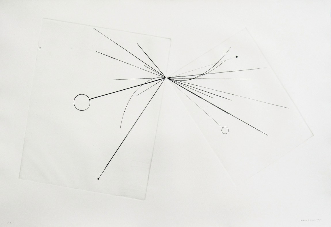 Esta gravura é singular e ao mesmo tempo significativa na sua trajetória ao mesmo tempo que transita entre o figurativo e a abstração.