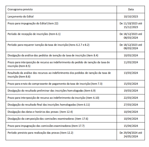 Calendário de Provas e Bancas Examinadoras