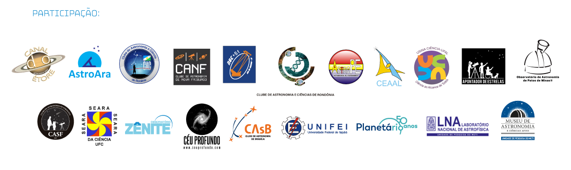Esta edição de “O Céu em sua casa: observação remota” será realizada em parceria com o Clube de Astronomia de Pernambuco (AstroPE) de Recife/PE, o Clube de Astronomia de Araruama (AstroAra/RJ), o Planetário do Rio, o Clube de Astronomia de Rondônia, o Clube de Astronomia de Roraima, o Centro de Estudos Astronômicos de Alagoas (CEAAL) e Usina da Ciência UFAL(AL) de Maceió/AL, o Canal do Étore (CanaldoÉtore) de Bauru/SP, o Canal Céu Profundo (São José dos Campos/SP), o Observatório Zênite (Monte Carmelo/MG), o Clube de Astronomia de Brasília (CAsB/DF), o Grupo de Astronomia do Espaço Ciência Viva (NGC-51/RJ), o Clube de Astronomia de Nova Friburgo (CANF/RJ), o Laboratório Nacional de Astrofísica (LNA/MG), a Universidade Federal de Itajubá (UNIFEI/MG), o Espaço Astronomia UDESC Oeste e Apontador de Estrelas (Chapecó/SC), o Museu de Astronomia e Ciências Afins (MAST/RJ), o Observatório de Astronomia de Patos de Minas (Observatório Dumont), a Seara da Ciência e o Clube de Astronomia de Fortaleza (CASF)