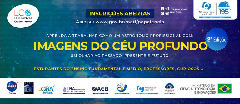 Estão abertas até o dia 27 de junho as inscrições para a segunda edição do Projeto Imagens do Céu Profundo, promovido pelo Ministério da Ciência, Tecnologia e Inovações (MCTI) em parceria com a NASA e coordenado pelo Observatório Nacional (ON) .