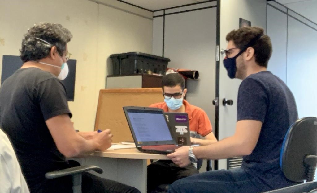 Dr. Ricardo Ogando e os estudantes de mestrado orientados por ele, Filipe Silva e Gabriel Calçada