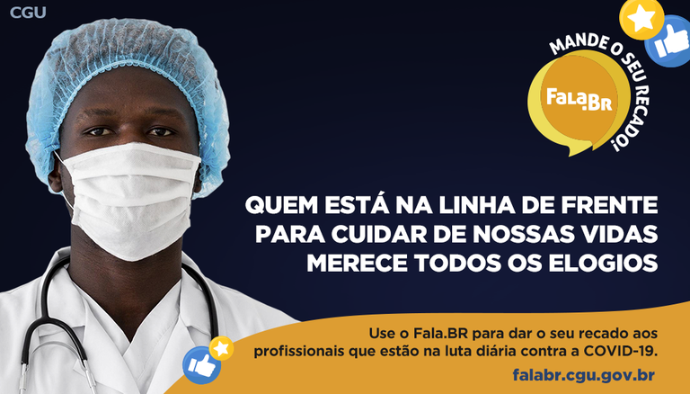 A Controladoria-Geral da União (CGU) lançou no dia 13 de julho uma nova campanha para estimular a população a enviar elogios e manifestações positivas de valorização do trabalho dos profissionais e instituições envolvidas na luta contra o coronavírus.