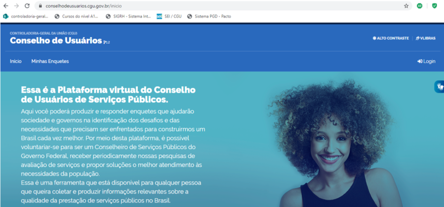 1º) Crie um login e uma senha na plataforma gov.br, em https://conselhodeusuarios.cgu.gov.br/signin e entre com esse login na Plataforma Virtual do Conselho de Usuários. Por enquanto, ainda é necessário que o usuário tenha cadastro também na Plataforma Fala.BR, em https://sistema.ouvidorias.gov.br/. Em breve essa autenticação será automática, facilitando o login na Plataforma.