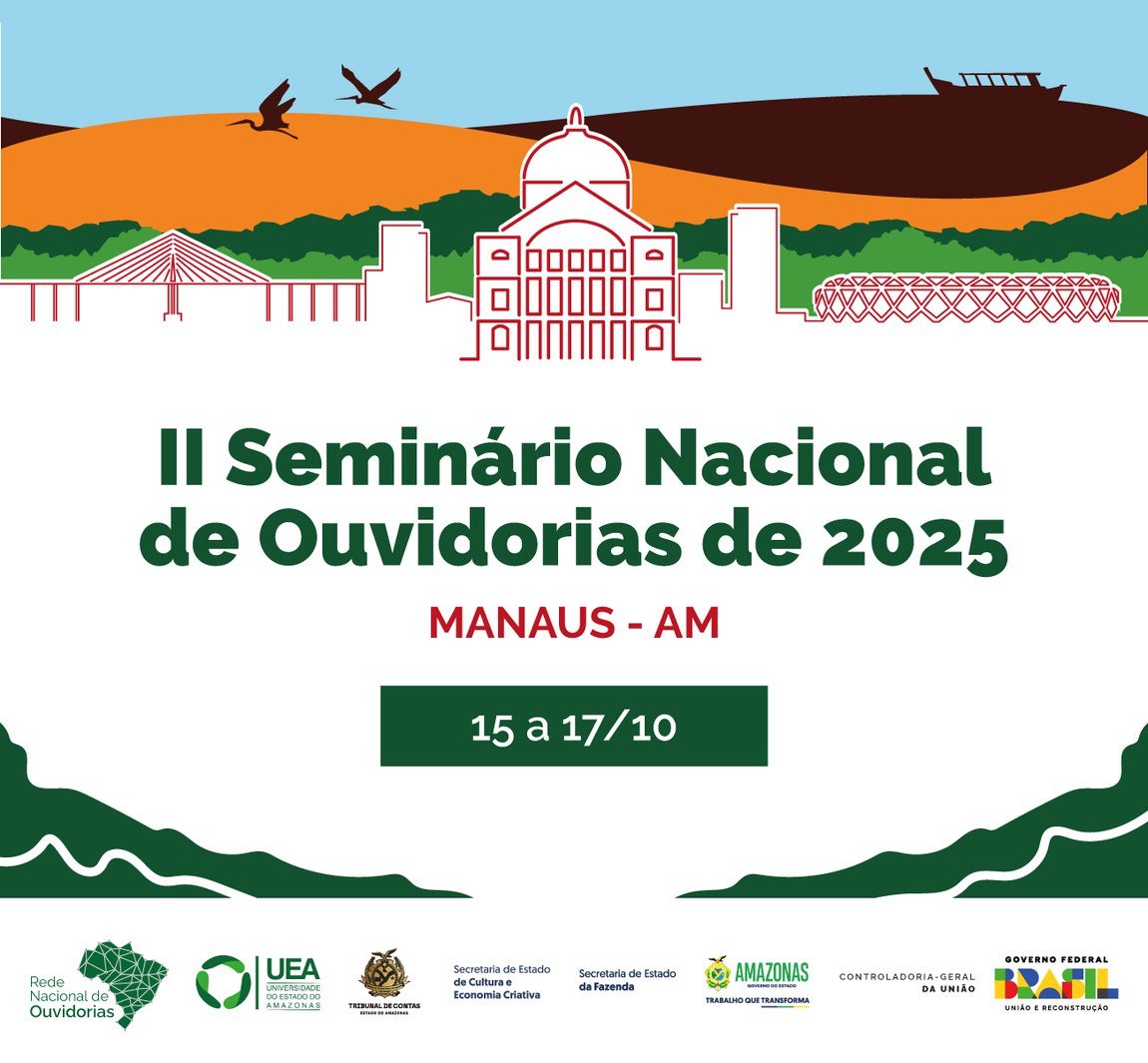 A Controladoria-Geral de União, a Controladoria-Geral do Estado do Amazonas e o Tribunal de Contas do Estado do Amazonas estendem o convite aos ouvidores, servidores de ouvidorias, acadêmicos e outros interessados para a primeira edição dos Seminários Nacionais de Ouvidoria 2022, que ocorrerá em Manaus, nos dias 6 e 7 de abril.