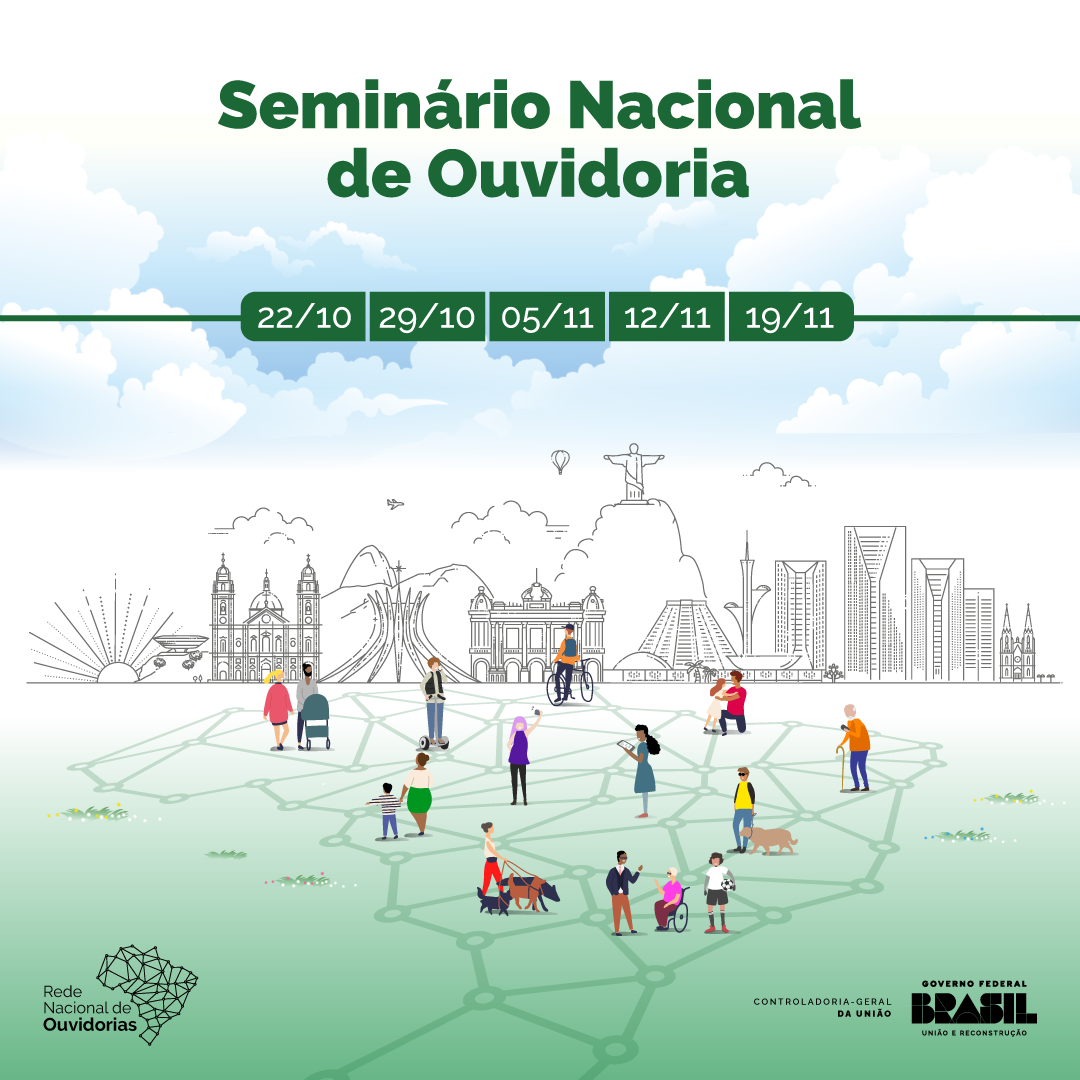 A Ouvidoria-Geral da União (OGU/CGU), em nome da RENOUV, promove a 2ª edição do Seminário Nacional de Ouvidoria de 2024 que, de forma inédita, foi desenhado inteiramente para a modalidade online. Os painéis e oficinas acontecerão às terças-feiras, de 22 de outubro a 19 de novembro, no período da tarde, sempre pelo Canal Oficial da CGU no YouTube.