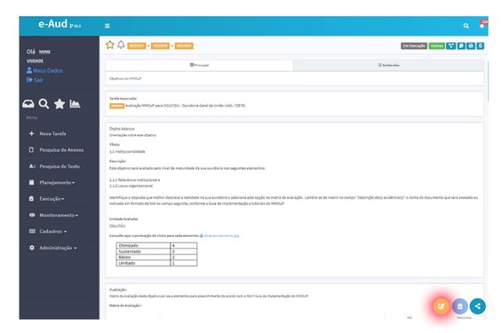 A fim de disponibilizar uma ferramenta para a gestão das informações do modelo e estruturar os fluxos de trabalho que envolvem tanto a autoavaliação quanto os processos de levantamento de evidências, validação e estabelecimento de níveis alvo da sua instituição, a CGU desenvolveu um conjunto de procedimentos específicos no sistema e-Aud, criado e sustentado pela própria CGU.