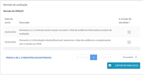 2. Consulte o campo Revisão, ao final da página. Neste campo você poderá identificar as informações ou evidências que precisarão ser complementadas, segundo a verificação realizada pela CGU.