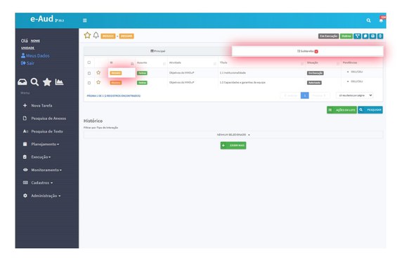 3. Caso você precise complementá-las, acesse a aba Subtarefas e localize o objetivo que deverá ser complementado.