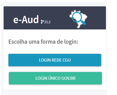 1. O(a) responsável irá acessar o endereço: https://eaud.cgu.gov.br/ e selecionar a forma de login “LOGIN ÚNICO GOV.BR.” (vide imagem) e preencher os dados da sua conta única.