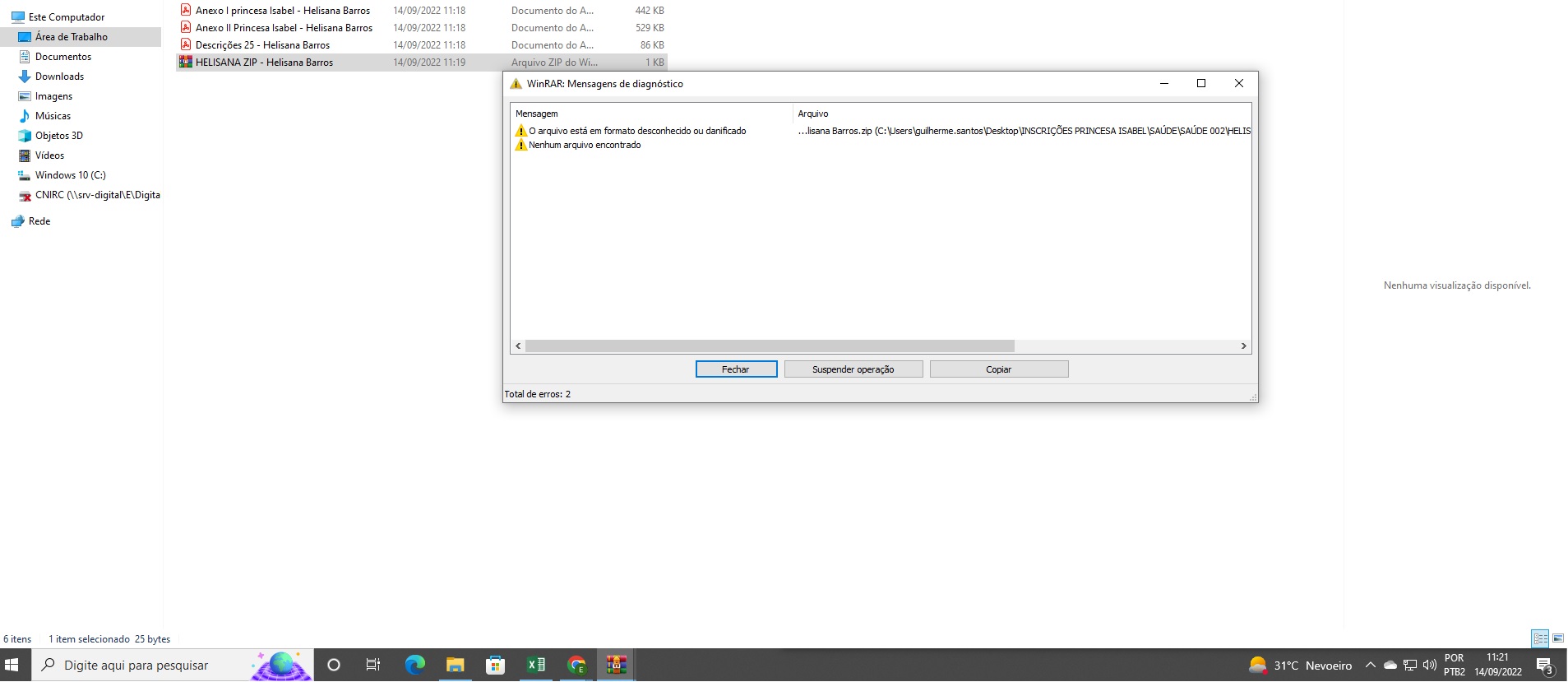 Tela de Erro – Arquivo Danificado – Candidata Helisana Barros