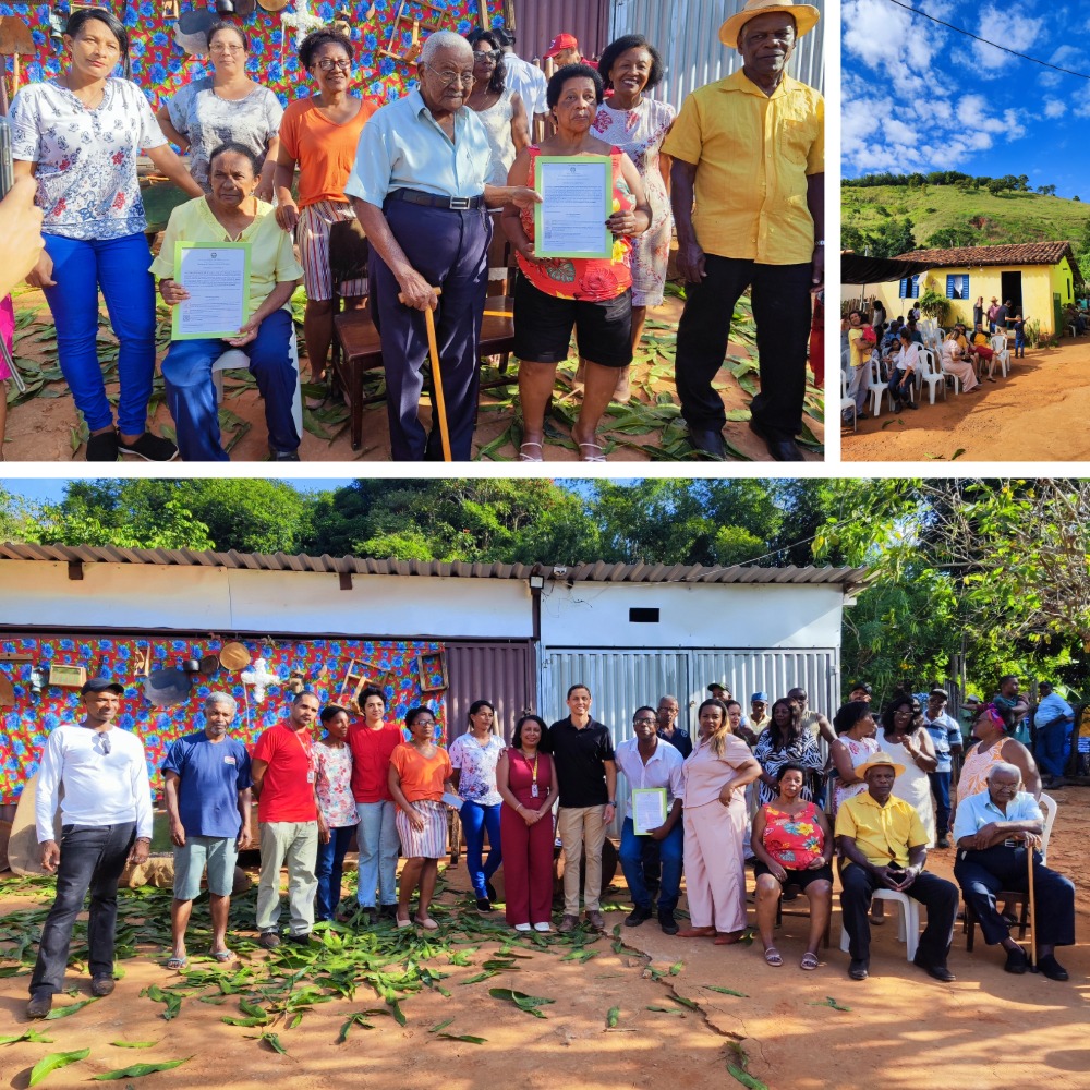 A comunidade, formada pelas famílias Porfírio e Souza, mantém vivas práticas culturais e modos de vida ligados ao período do ciclo do ouro. A entrega da certidão aconteceu em um encontro marcado por acolhimento, memória e posicionamento político. Moradores receberam os representantes da Fundação com viola, sanfona, almoço coletivo e relatos que reafirmam a continuidade da luta por território, autonomia e reconhecimento do Estado.