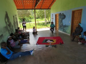 Houve uma roda de conversa na comunidade, onde os Colombianos realizaram perguntas sobre a comunidade e sua realidade. A recepção foi realizada pelas atuais lideranças da comunidade, senhor Cirilo e Dona Getúlia, que contaram um pouco sobre a história de Kalunga.
