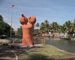 A escultura está exposta na orla da Lagoa da Anta, em Maceió.