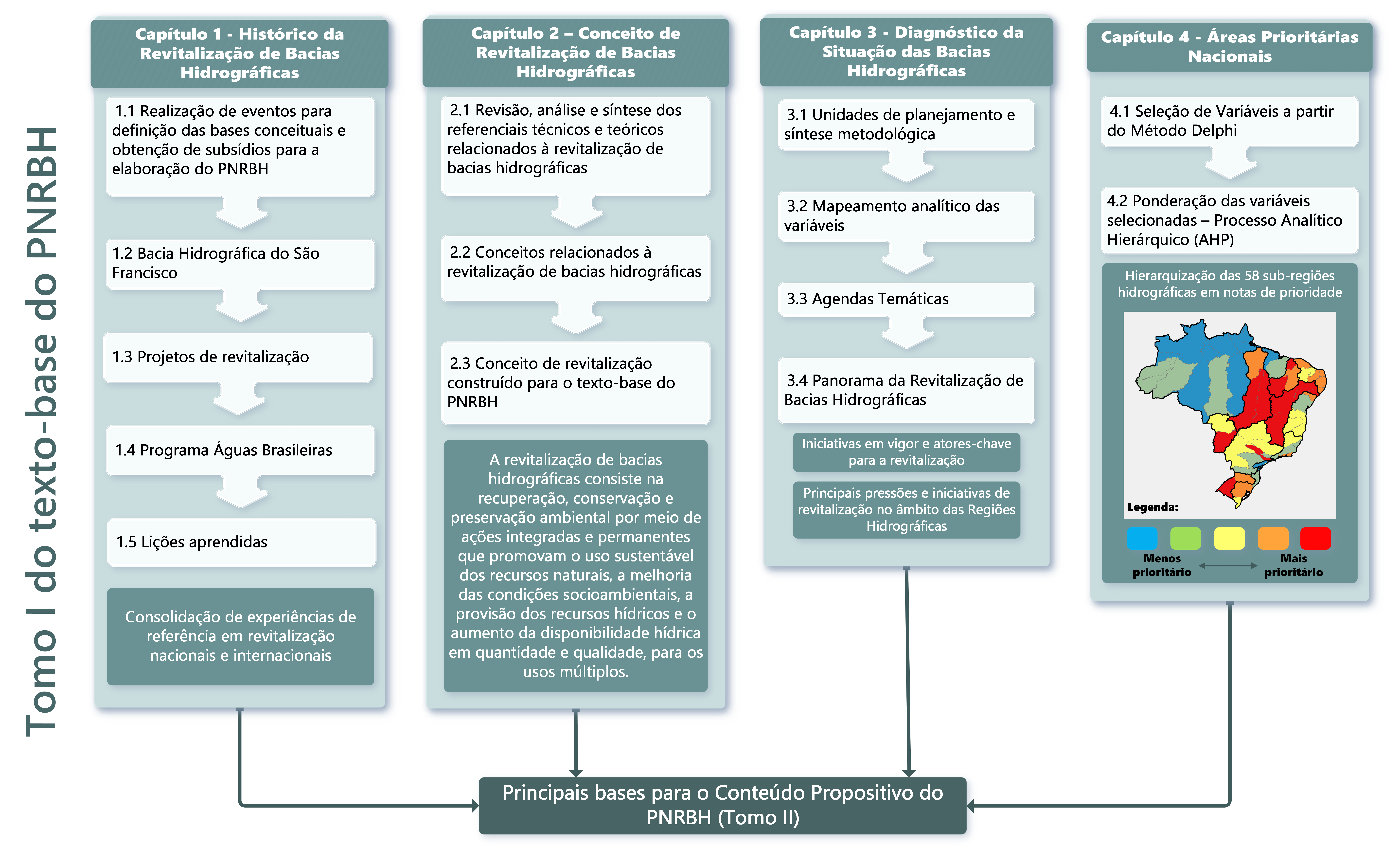 Fluxograma ilustrativo com o conteúdo do tomo I do texto-base do PNRBH.