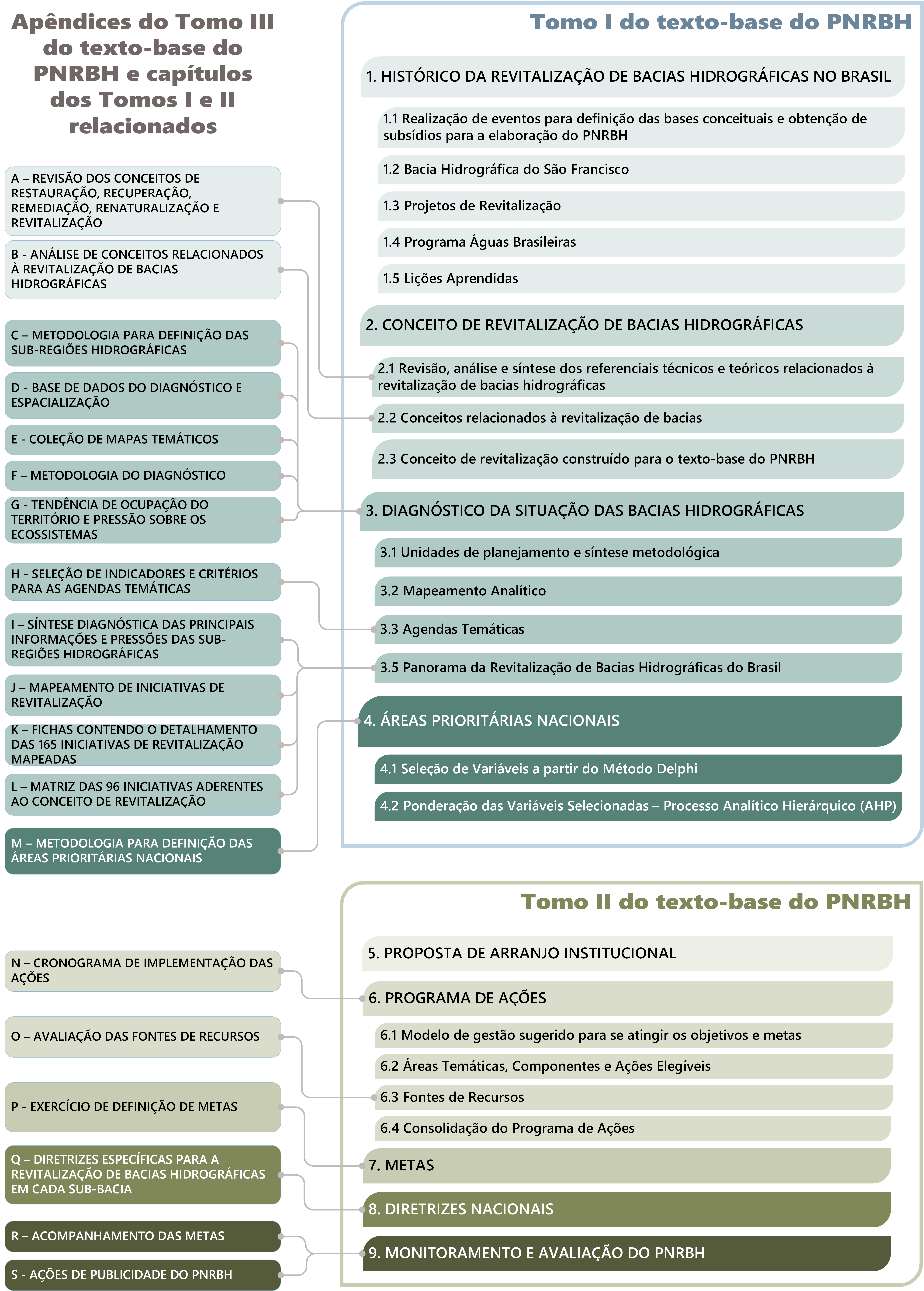 Fluxograma ilustrativo com o conteúdo do tomo II do texto-base do PNRBH.