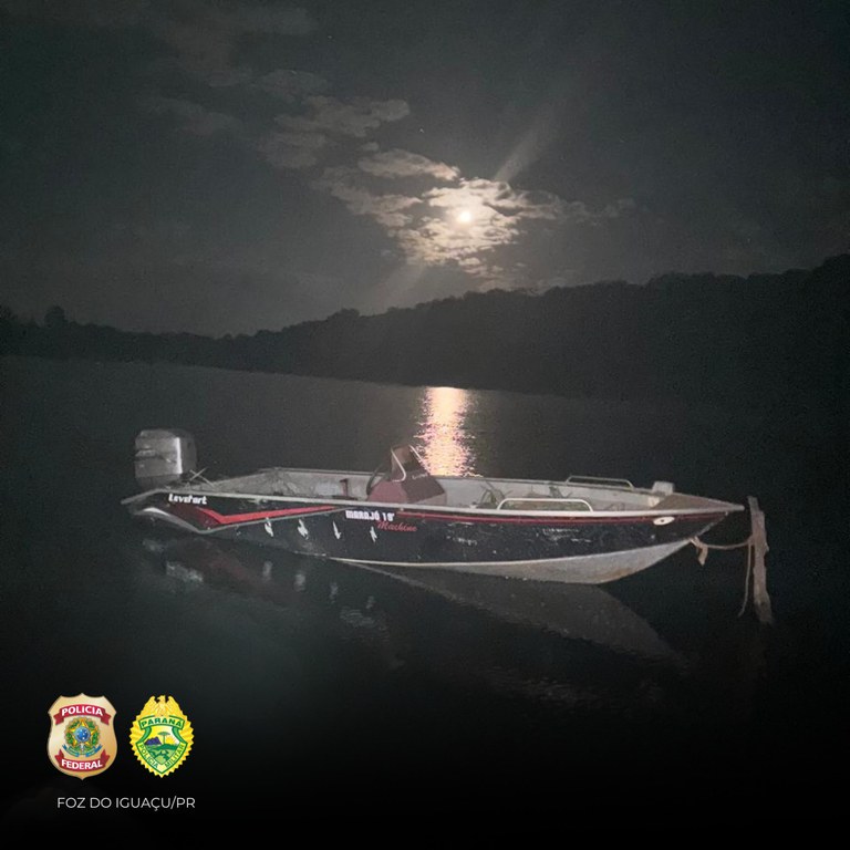 Foz do Iguaçu/PR. A Polícia Federal e a Polícia Militar do Paraná apreenderam, na última quinta-feira (20/3), uma embarcação utilizada para a prática de contrabando nas margens do Lago de Itaipu/PR, na região de São Miguel do Iguaçu/PR.