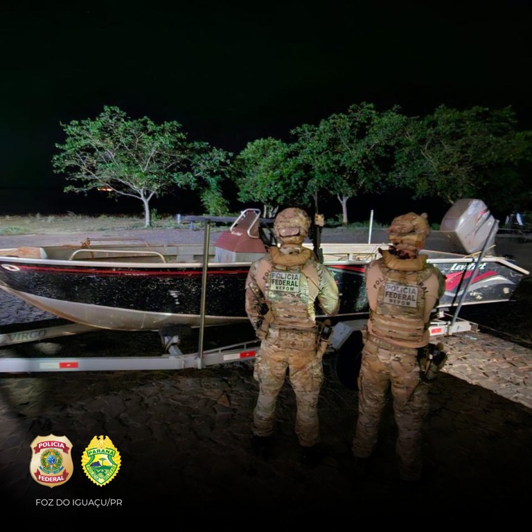 A ação ocorreu quando os policiais encontraram o barco camuflado entre galhos e vegetação local. A embarcação foi levada para a Capitania dos Portos em Foz do Iguaçu/PR para a realização dos procedimentos cabíveis.