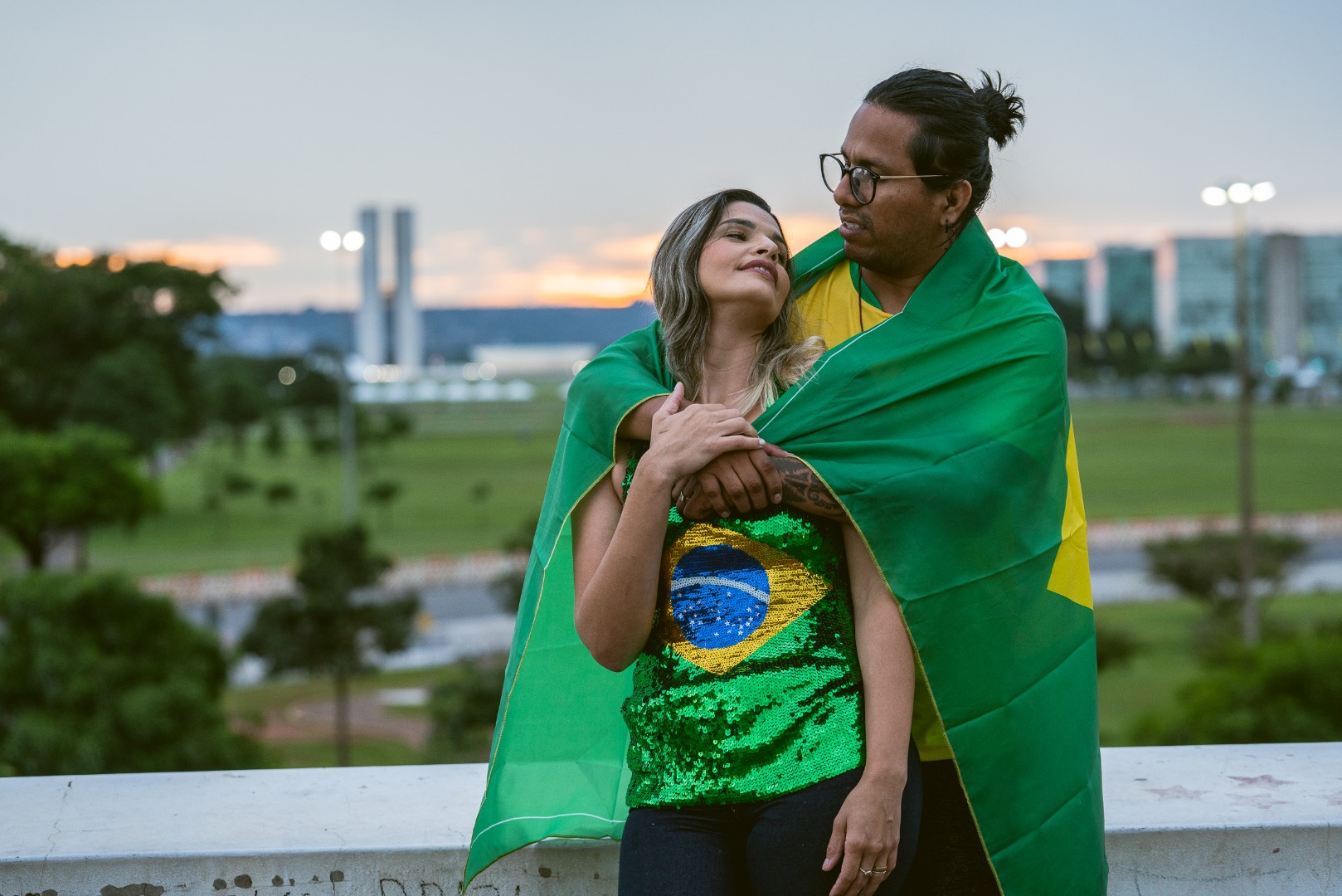 Os produtores musicais Jhonatan Mosheh e Sheila de Castro, moradores do Novo Gama (GO), foram uma dos primeiros a chegar na Esplanada dos Ministérios para a Posse Presidencial