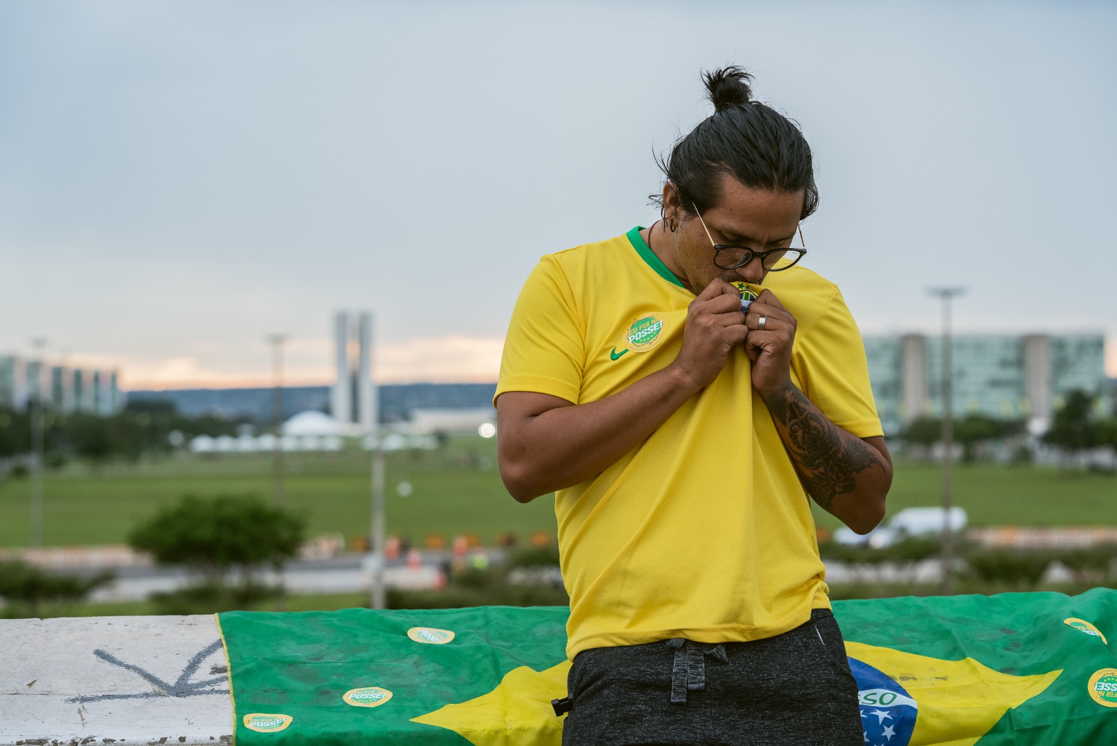 O produtor musical, Jhonatan Mosheh, morador do Novo Gama (GO), chegou cedo na Esplanada dos Ministérios para a Posse Presidencial