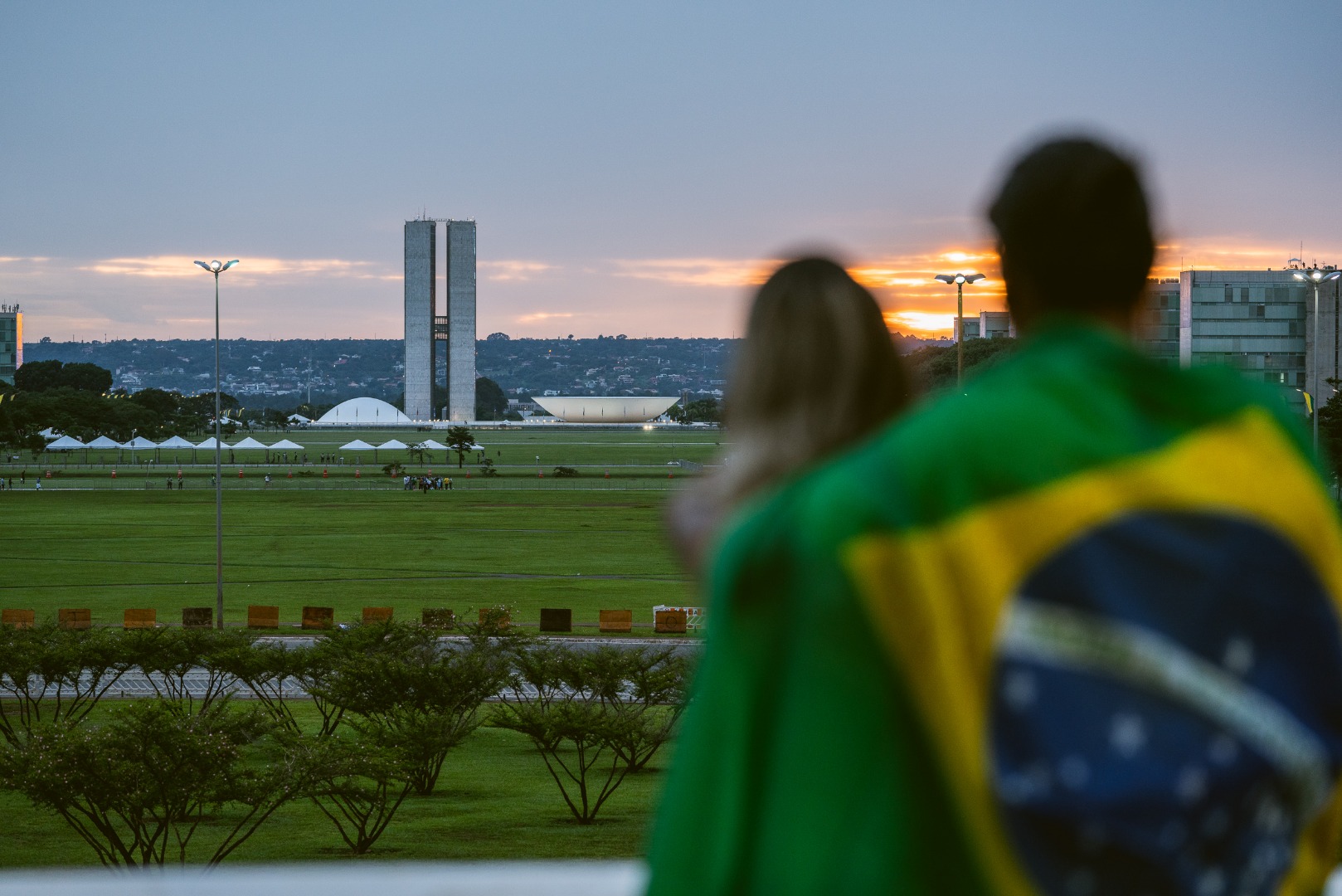 Os produtores musicais Jhonatan Mosheh e Sheila de Castro, moradores do Novo Gama (GO), foram uma dos primeiros a chegar na Esplanada dos Ministérios para a Posse Presidencial