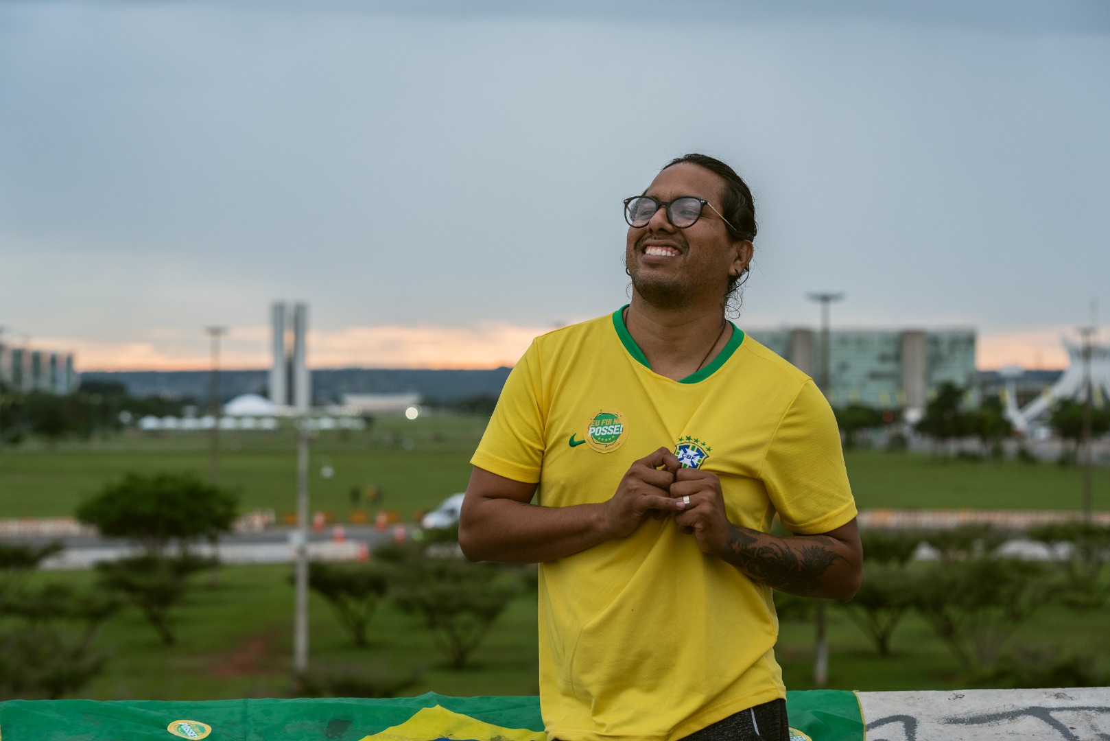 O produtor musical, Jhonatan Mosheh, morador do Novo Gama (GO), chegou cedo na Esplanada dos Ministérios para a Posse Presidencial