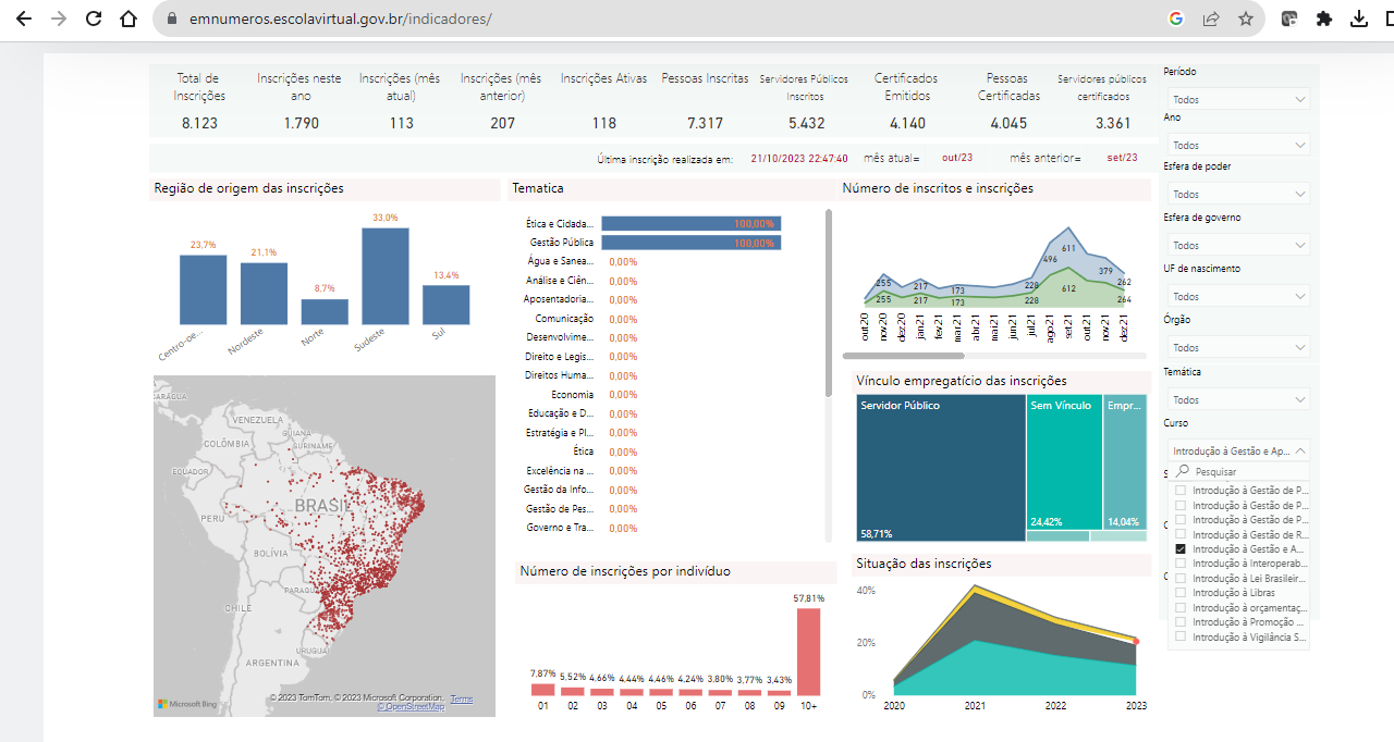 Outros indicadores do curso podem ser encontrados na página da EV.G.