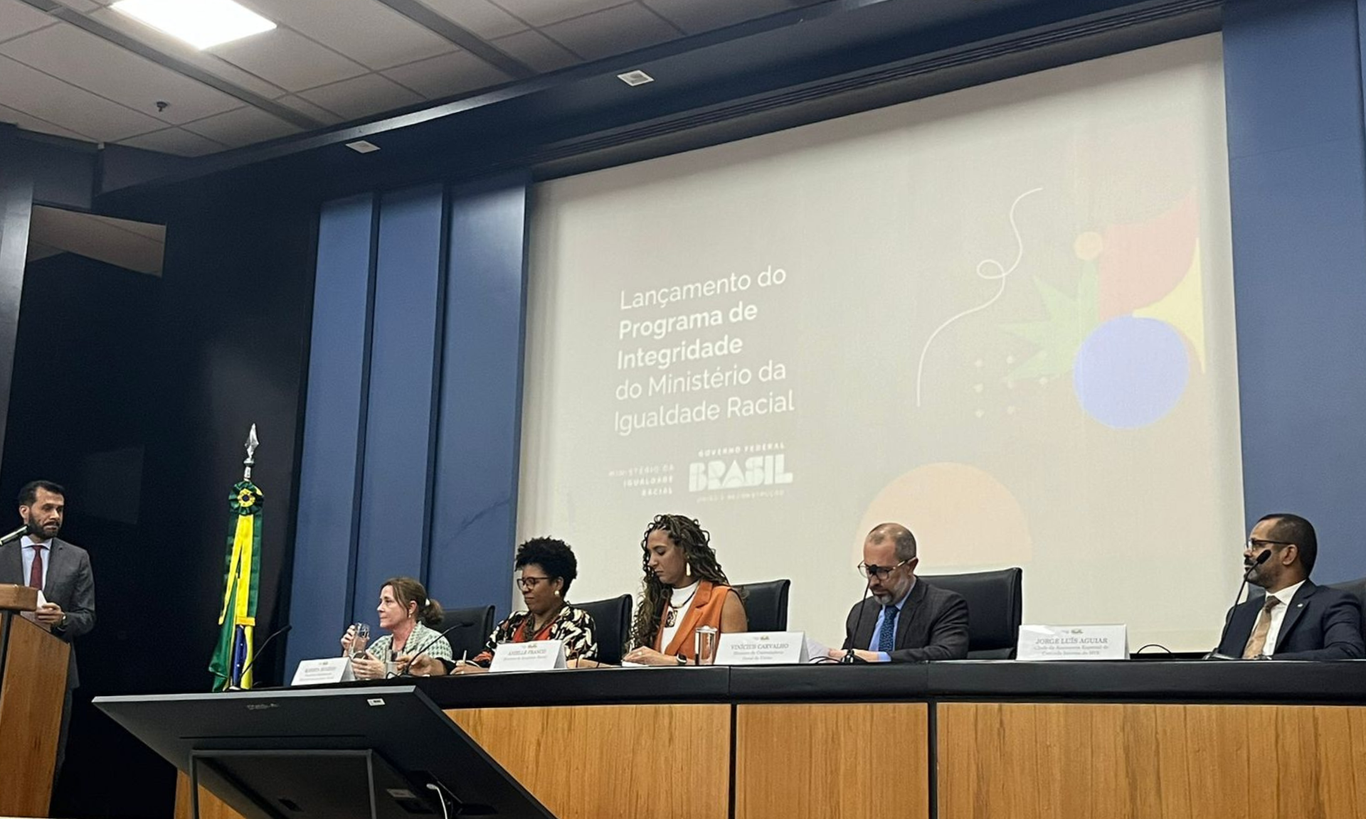 Estiveram presentes no evento a Ministra da Igualdade Racial, Anielle Franco, a Secretária-Executiva do MIR, Roberta Eugênio, o Ministro da Controladoria-Geral da União (CGU), Vinícius de Carvalho, o Assessor Especial de Controle Interno (AECI) do MIR, Jorge Luis Aguiar, a Diretora de Integridade Pública da CGU, Renata Figueiredo, e a Presidente da Comissão de Ética do MIR, Katia Evangelista Regis.
