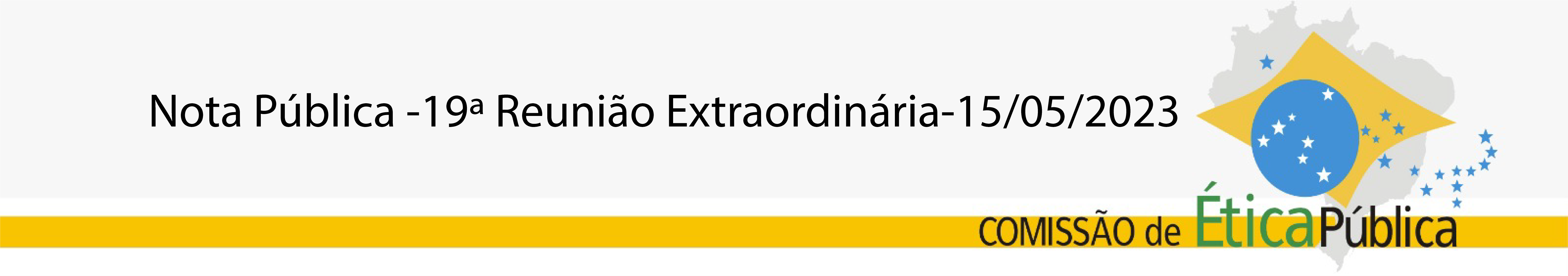 A Comissão de Ética Pública – CEP informa que, em sua 19ª Reunião Extraordinária, realizada em 15 de maio de 2023, por videoconferência/presencial, conforme previsto no Regimento Interno da CEP, com as alterações efetivadas pela Resolução nº 14, de 25 de março de 2020, compuseram a pauta 25 (vinte e cinco) processos , sendo: